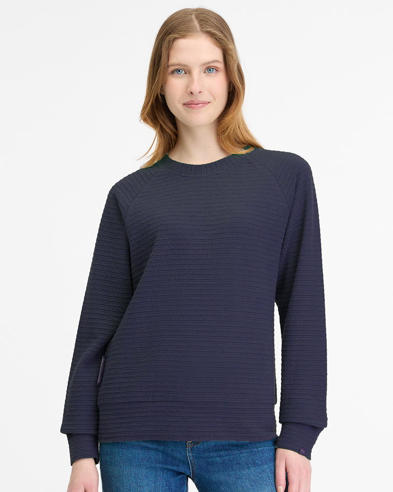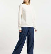 ragwear's JOANN CREPE pullover shows that comfort and beauty can go hand in hand. Ideal for cooler days, it layers seamlessly under a jacket, while its lightweight, relaxed fit provides plenty of room for layering underneath. Not only does its subtly crinkled fabric offer a feel-good texture against your skin, but it also adds a touch of sophistication, elevating this piece from a simple sweatshirt to a stylish, sustainable everyday essential.